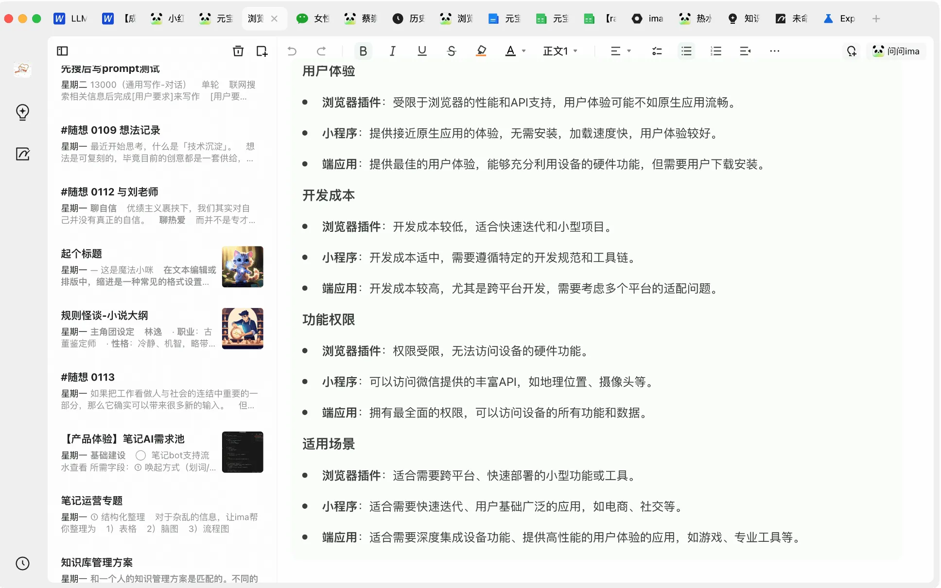 ima笔记可以帮助你在AI问答、浏览网页、阅读文章或进行其他活动时,随时随地记录下自己的感触和想法,轻松地捕捉灵感,并将其转化为有价值的文字记录。