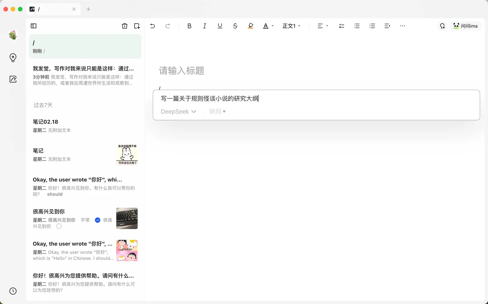除了基础的格式编辑、插入图片、待办清单等功能,ima笔记还配备了智能写作功能,在桌面端,你可输入斜杠,或框选你待进一步创作的文字,唤起AI辅助创作;在移动端,你可以直接点击AI帮写入口,与ima共创内容。