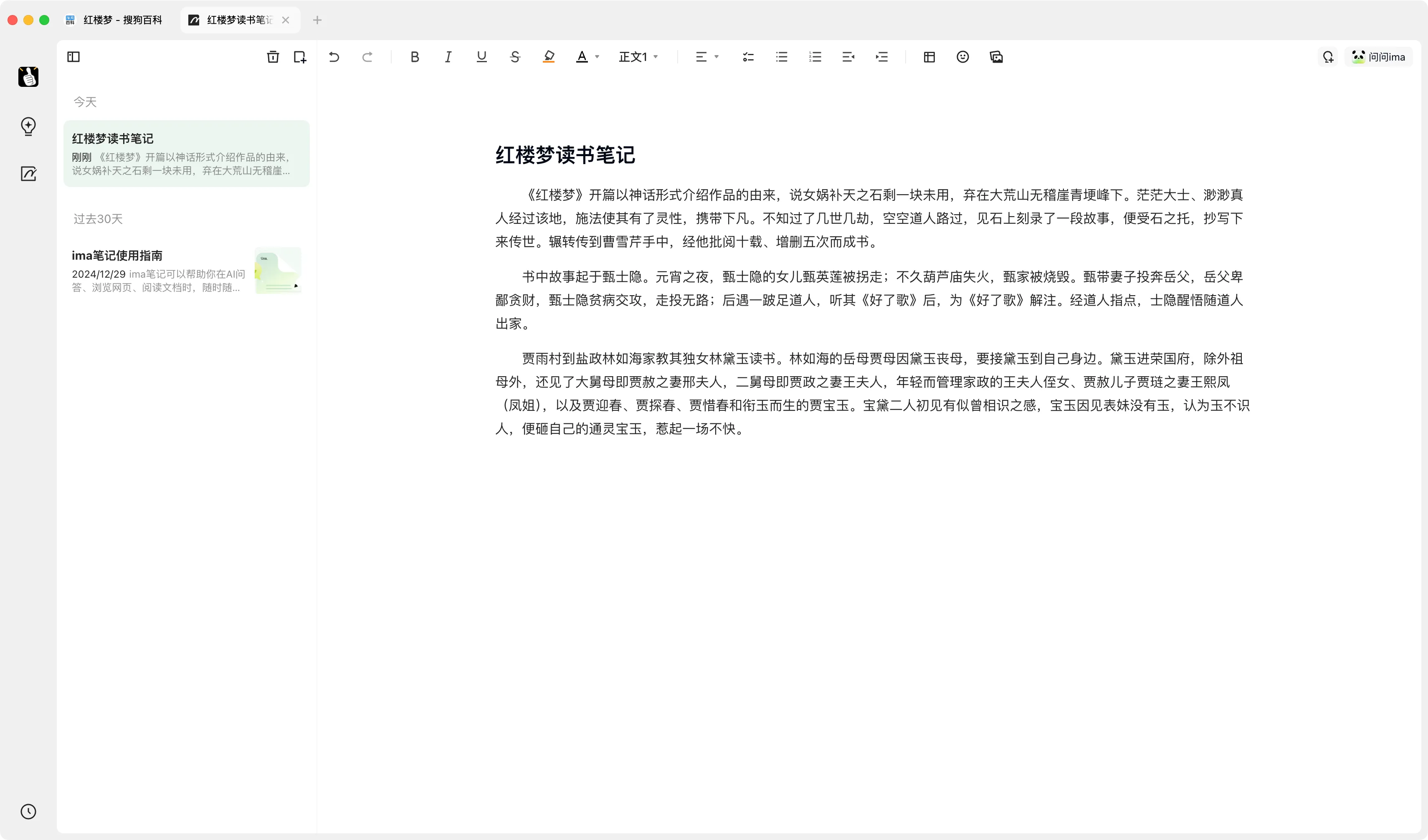 不管是调整标题层级,添加项目符号、编号来梳理要点,还是用加粗、倾斜突出重点,亦或是快速插入图、表,ima笔记都能一键完成。简单直观的操作,助你高效产出逻辑清晰、格式美观的笔记